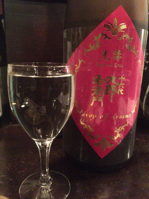 9時過ぎのため、お通しはハーフサイズを。日本酒はお決まりの黒牛からスタート。フルーティの中にしっかりとした味わいがあり美味い!オーナーさんのお話では黒牛の杜氏は40前半の方で、次世代への酒づくりの引き継ぎがうまくできているという裏話をアテに、なんとなく辻善兵衛をチョイスし、お店の名物の馬刺しも注文。