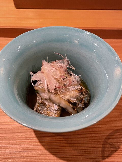 お任せコースは雲丹乗せ胡麻豆腐から始まり、車海老、鱧、天然鯛とアオリイカの造り、稚鮎の天ぷら、太刀魚の焼き物など、全てが美味しく、最後まで楽しませて頂きました。