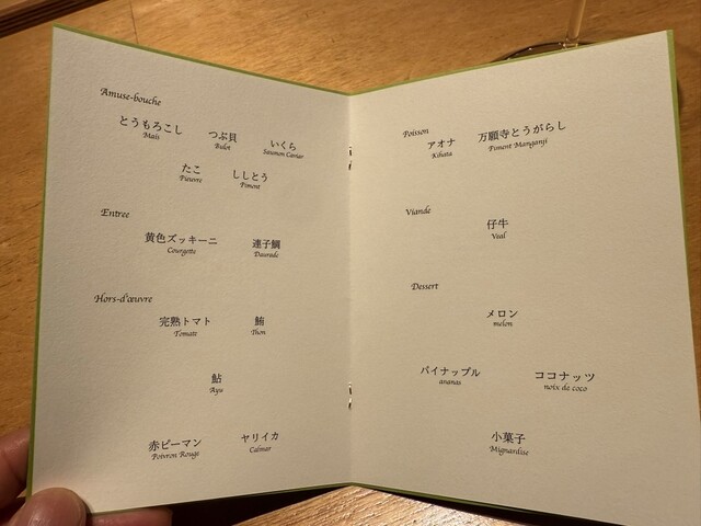 28000円でもなんの問題もないじゃない。と思うレベル。しかしそんなお買い得な話ではない。ひとつひとつの料理のレベルが高い。完成度が高く、オープンキッチンで繰り広げられる若手の躍動と連携に軽く感動さえ感じる。