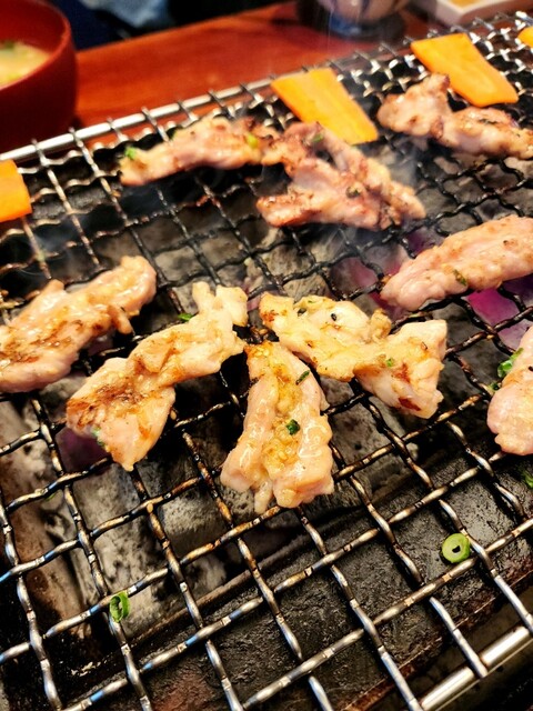 炭火でゆっくり焼くお肉でご飯がすすむ