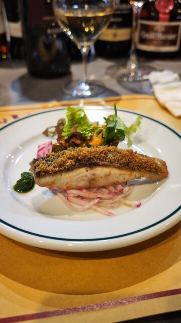 ・サワラのパン粉焼きカブの葉のサルサヴェルデ添え