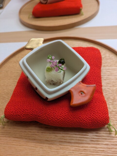 「自家製のお豆腐」 卓上の「しじみと昆布の醤油」をかけて