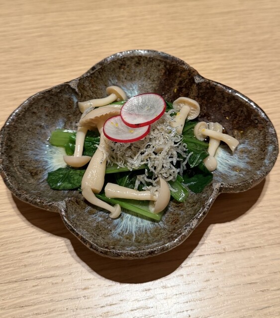 脂の乗った鰆をシンプルに塩焼きで。外は香ばしく、中はふっくら。添えられたちり酢がほどよく酸味を添え、魚の甘みをさらに引き立てていました。