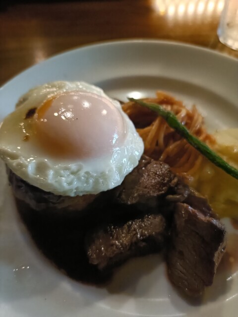 ハンバーグは外は香ばしく、中はふっくらジューシーで、ご飯との相性も抜群。ソースはコクがありながら重すぎず、最後まで飽きずに食べられました。付け合わせの野菜や副菜も丁寧に作られており、バランスの良いランチ内容です。ボリュームがありつつも、食後に重たさを感じにくい点も好印象でした。