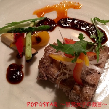 ★メイン(肉か魚か選択)・・・鹿児島豚のソテー有馬山椒と柚子胡椒のソースで