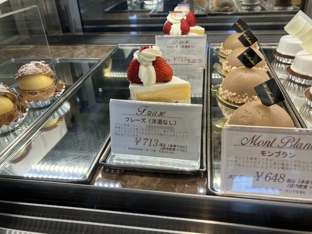 フランボワジェは洋酒の香りが華やかにフランボワーズの酸味とクリームの甘さが絶妙で◎