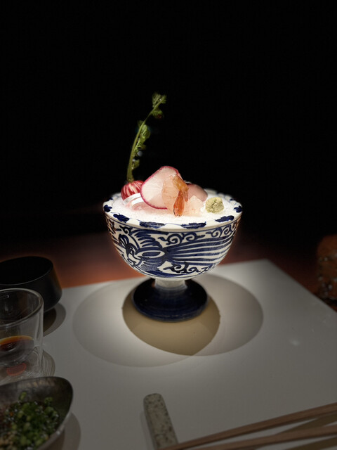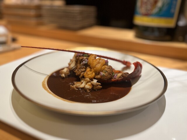 フカヒレ天ぷら/赤パプリカ/しまえびビスク