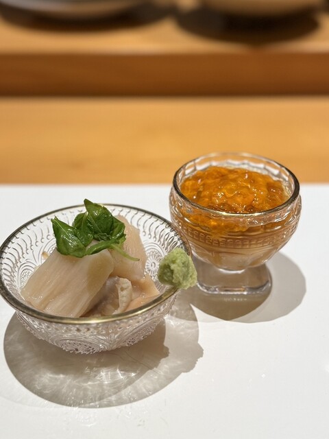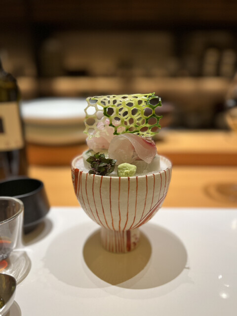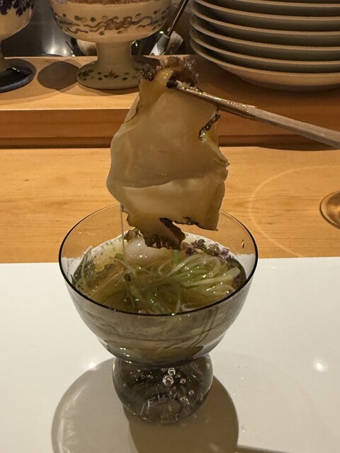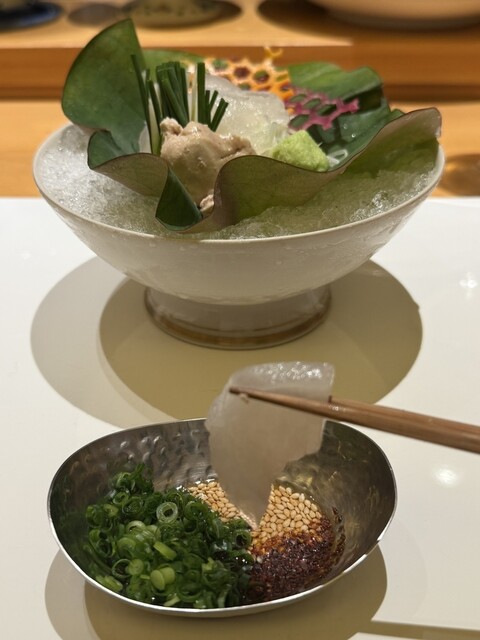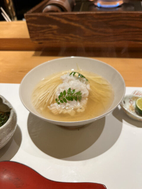 既に立派な親方でもある山崎さんの料理はスタートから山崎さんらしさ全開でありつつ走り中の走り鱧しゃぶなどこれぞみえ田という料理構成でした。