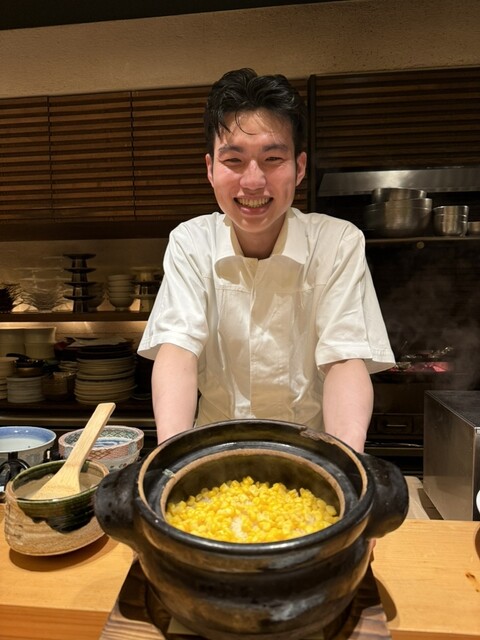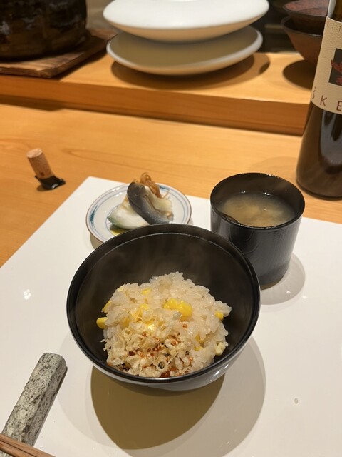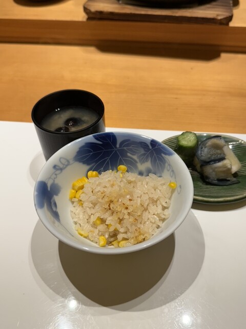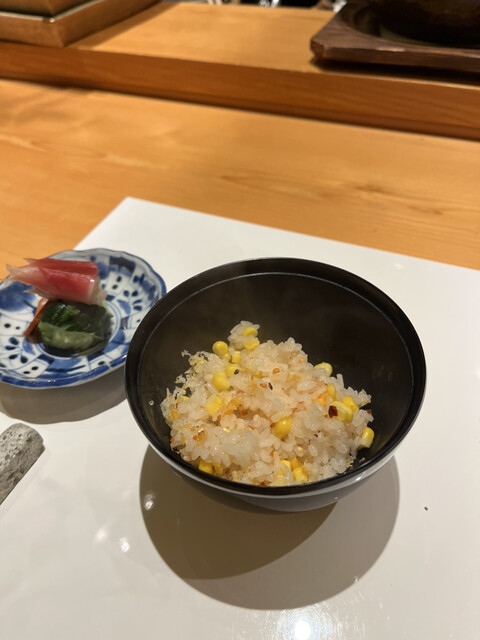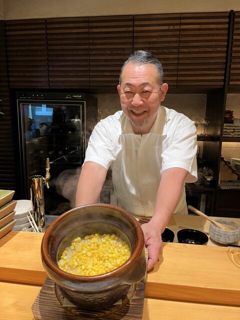 涼しげな一皿から始まり〆は朝もぎとうもろこしご飯。毎年の楽しみ はじけるコーンがたまらない。 鍋の大量松茸とマナガツオもやばかったぁ