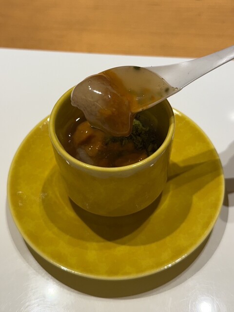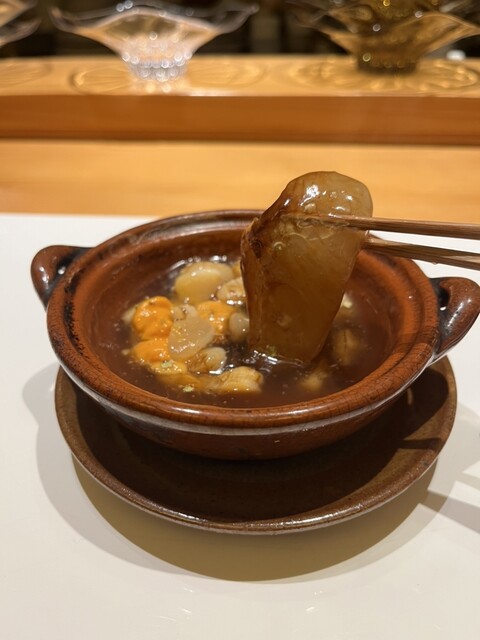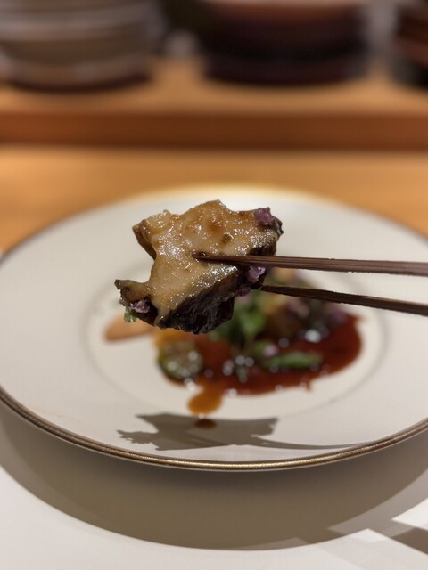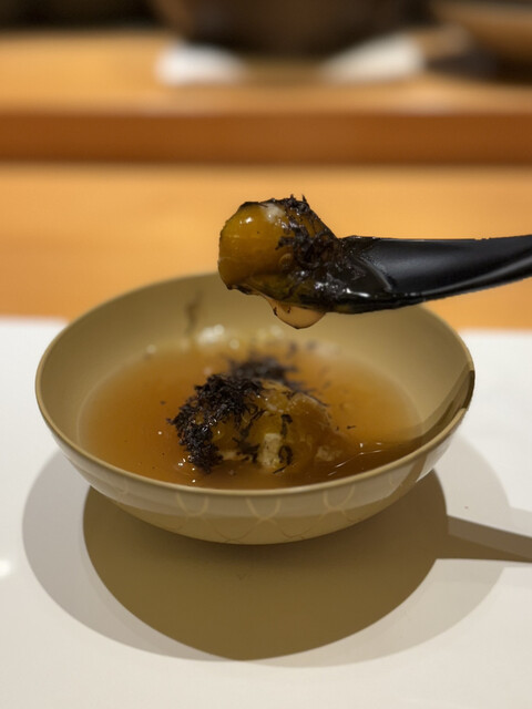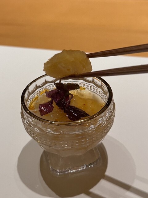 ♢柔らか蒸し黒鮑と富士りんごのXO醬ソース