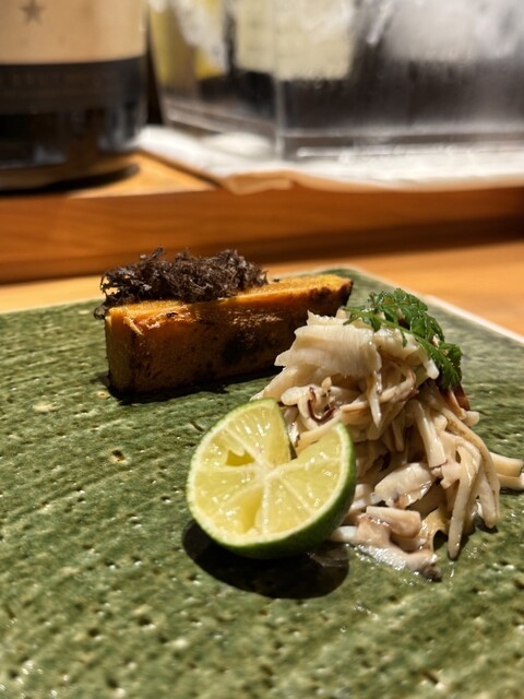 エゾアワビ柔らか煮/海ぶどう/自家製海苔佃煮/酢橘