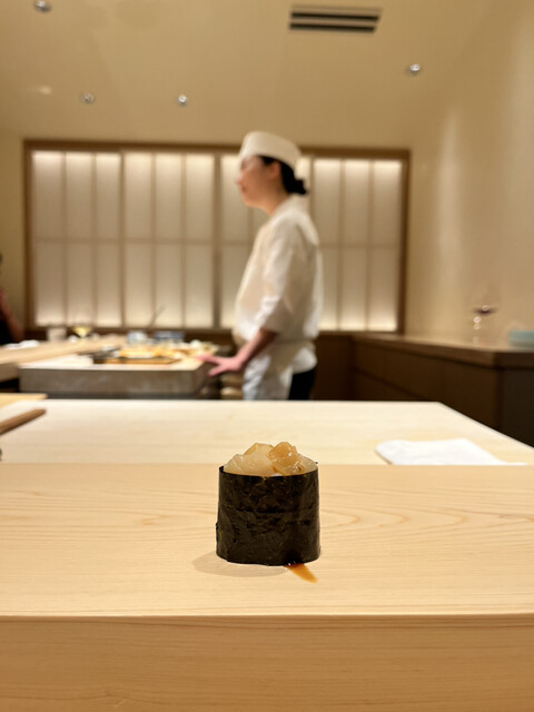 まず、所作の美しさや柔らかい空気感は女性云々より本人の持つオーラからくるもので居心地は抜群です。ツマミ〜握りまで総括すると師匠あらい氏にも負けず劣らずで大変美味しゅうございました。