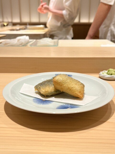 初めて頂くことが出来たテリーヌも見た目を超える美味しさでめい乃の真骨頂“小肌”入りです。コノシロのフライに新子の握りと三役揃い踏みでした。