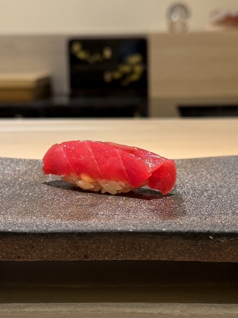 江戸前の意地が伝わります。酸味も弱く脂も軽い鮪と力強い舎利はベストマッチです。