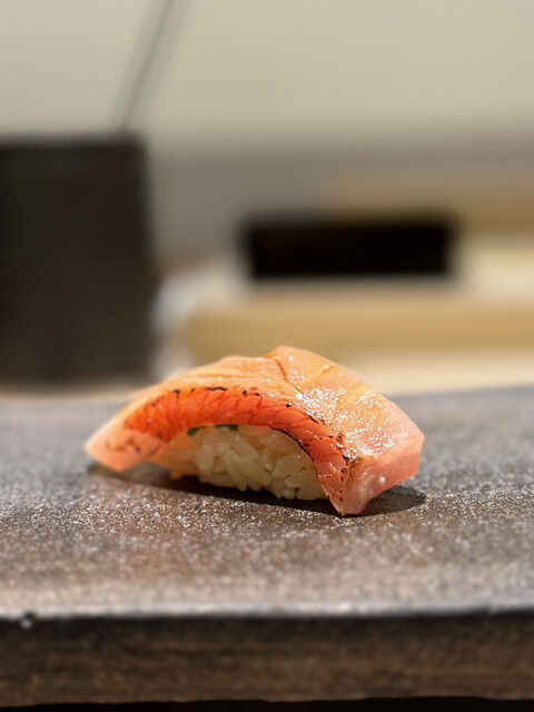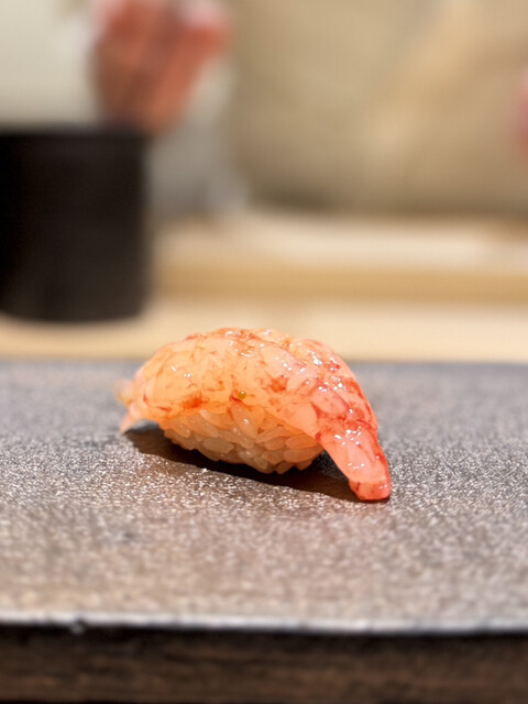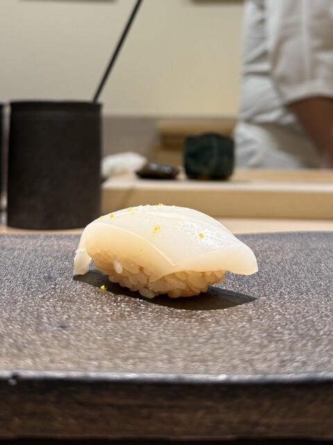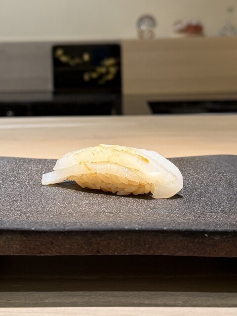 舎利の温度、硬さが自分好みでやや大ぶりのふっくらした舎利は鼻から抜ける酢の香りと共にネタに寄り添う。白身や小肌に見事に合う舎利なのに鮪にも寄り添う。まさに天才島津親方ならでは。