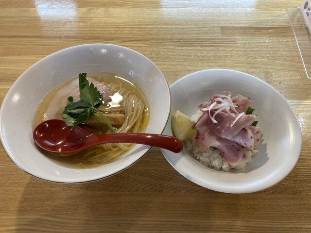 サイドオーダーの肉ご飯は、沢山のレアチャーシューに特製のタレがかかっていて、レモンを絞って食べます。ラーメンとは対照的に、タレのコクとレモンの酸味が自己主張しており、店主の遊び心が感じられます。