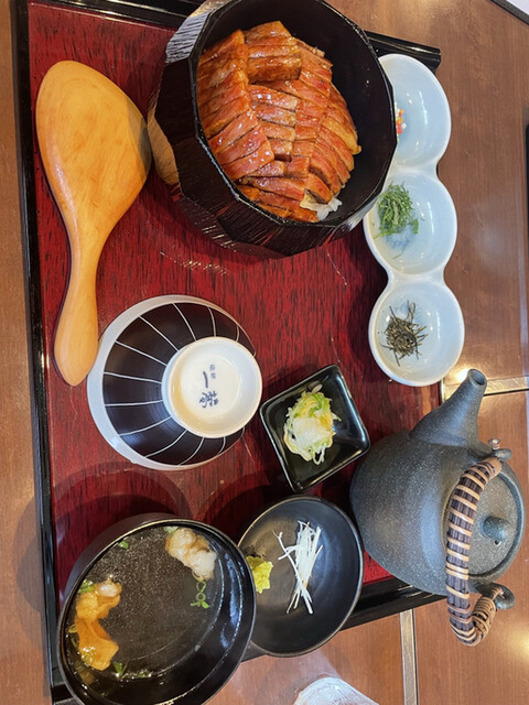 蓋を開けた瞬間思わず声が出た笑 ご飯の上に肉まぶしがドドーンと乗ってる!!薬味も色々あって、店員さんからも説明あり。まずはそのまま。その後、薬味と一緒に。その後お出汁と一緒に。最後は好きな食べ方で。薬味がよく合って美味しかった。ご飯はちょっと柔らかめ。お肉も柔らかめだから合わせてるのかも。個人的には固めご飯でも食べたい。