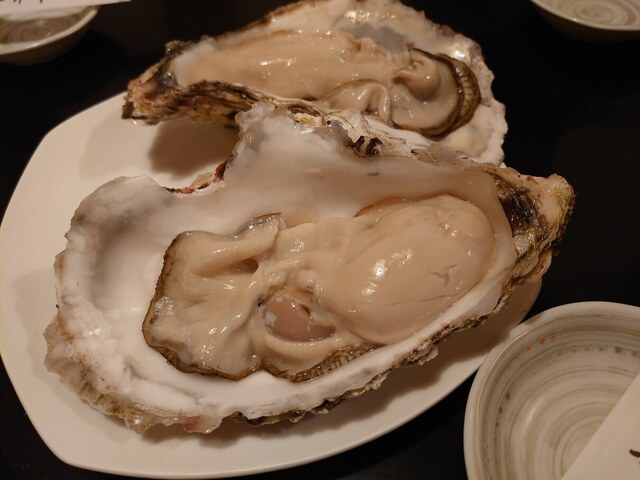 先ずは瓶ビールを飲んで喉を潤していると、大将が大きい牡蠣を持ってきてくれます