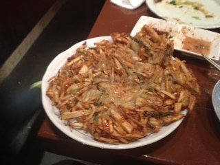 韓国の屋台で食べたチヂミは、カリカリッサクサクッだった。