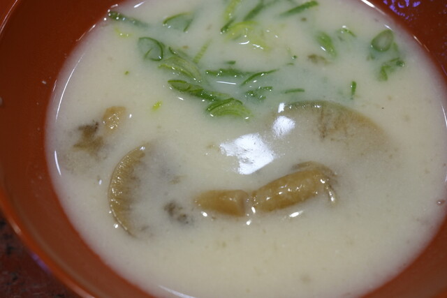 驚くほど大きな天然のなめたけが入った白味噌椀は、とろりとした甘みが身体の芯まで染み渡ります。