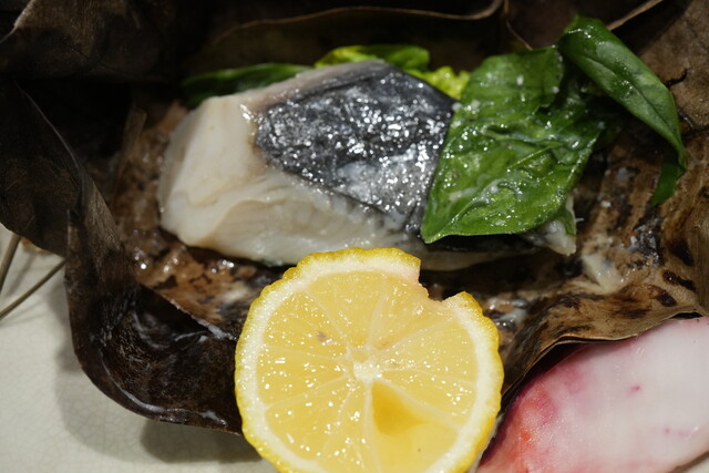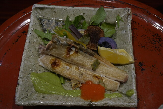 「琵琶鱒のお寿司」、「実山椒ときゅうりの巻物」は、伝統的な押し寿司にアクセントを加え、「香たけを米粉揚げ」は、精進料理のような繊細な天ぷらの技術を感じさせます。