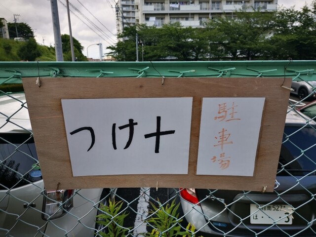食後に駐車場を現地までご店主に案内していただきました。店舗入口から見て左側の50メートル位先に1台分ありました。これで次回以降はイオンの駐車場に入れなくても食べに来れるかなぁ