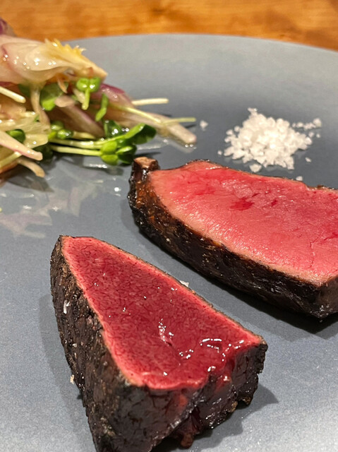 完全放牧された、筋肉隆々な牛がサカエヤさんの熟成技術によって、さらにシェフの手が加えられ、こんなに美味しくなるんだなという感動が込み上げてきます。