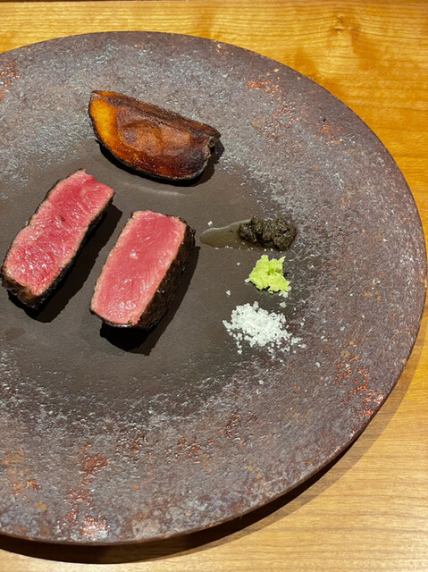 筋肉質なサシの入っていない赤身のお肉は、弾力がすごい。肉本来の旨味が濃縮されているといった感じです。