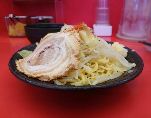 もやしヤサイと麺をドカンとつけダレに投入して食べ進める幸せ。