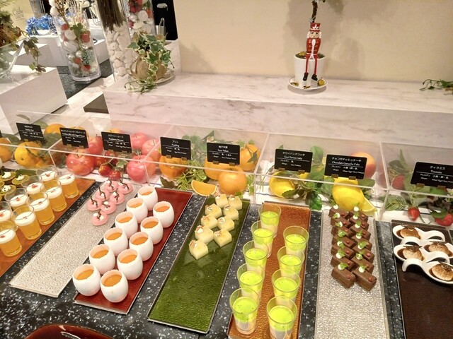 早速お料理を見に行くと、手前に飾り付けられたデザートコーナー。