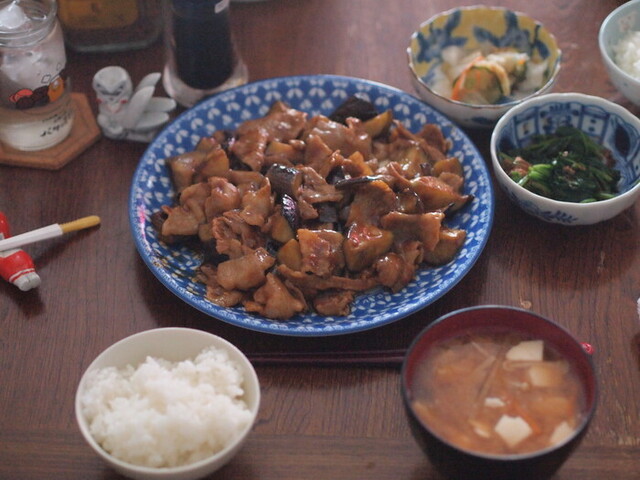 夕食は豚バラ茄子。