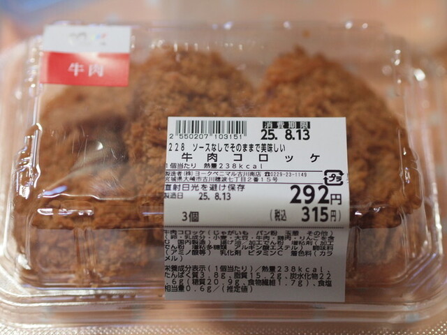 夕食のおかずはヨークの惣菜 牛肉コロッケです。