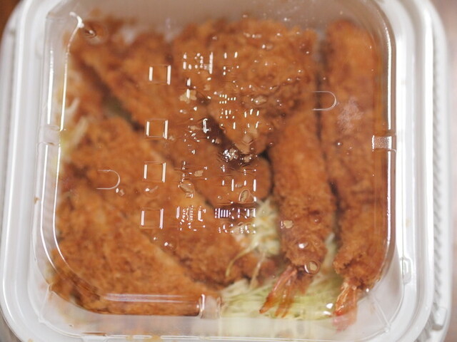 自分はカツ丼は多いので,初めて海老ロースカツ弁当853円をチョイス。