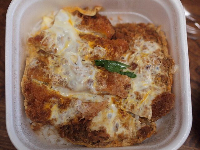 カツ丼のテイクアウト用の容器。
