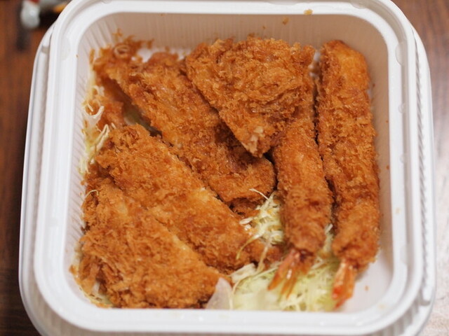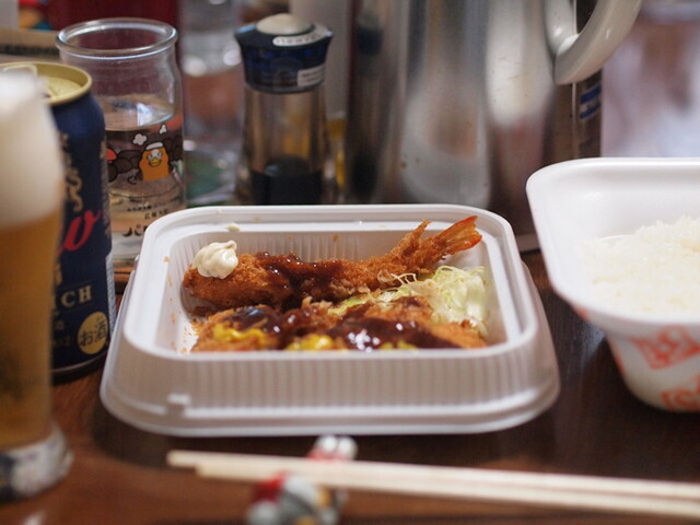 自分はとんかつと海老フライをおかずにカツ丼を食った。