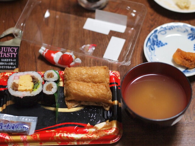 今日は助六とイカフライ、しそ巻きが美味しく日本酒にあっていたので、よしとしましょう。