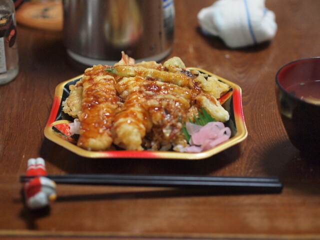 お店の天丼とは一味違って、濃い。