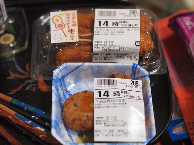 今夜の夕食はウジエの惣菜。カロリーがまったく分かりません。