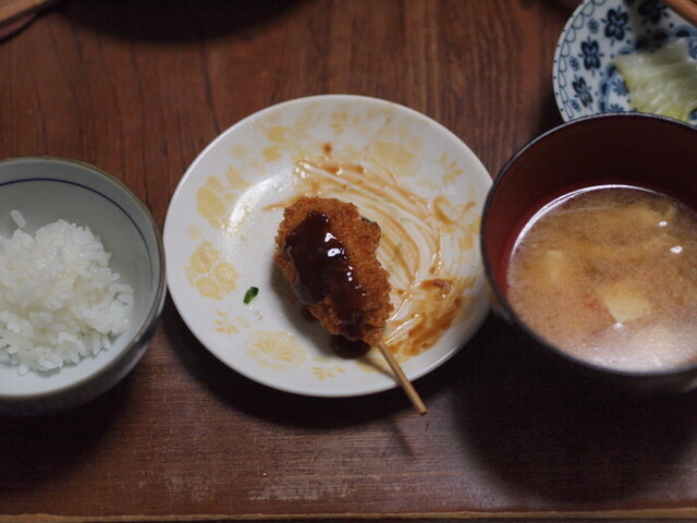晩酌タイム終了後、餃子、つくねをチンし、味噌汁を温めて、いざ 夕食。