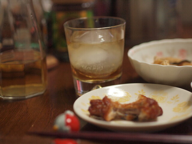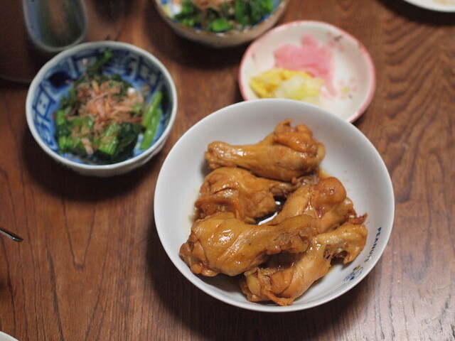 夕食のおかずだけではもったいないので、手羽炙りと黒酢和えの肉を残して、そのまま本酌のつまみとしました。