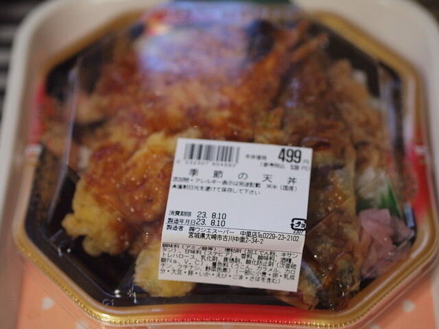今日も何かリクエストを……と、で、自分 ウジエスーパーの天丼をお願いしました。