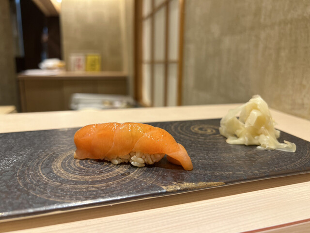 赤酢のシャリがほろりと口の中でお魚とまじりあってくれる、丁寧に握ってくれているのが伝わるお鮨です。