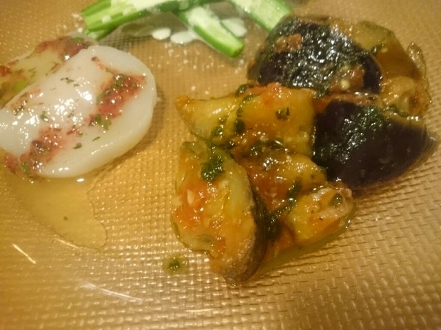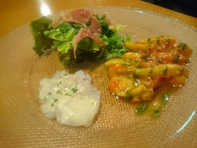 イワシのマリネ、海老のオーロラソース、タコマリネ、