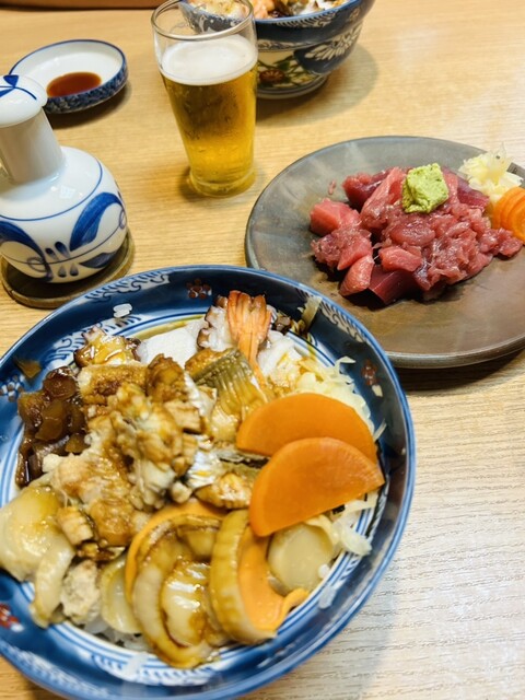 煮もの丼とマグロの中落ちのあたま(ご飯なし)をいただきました。