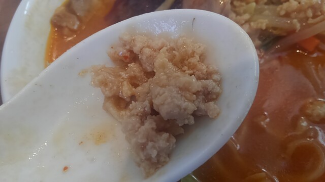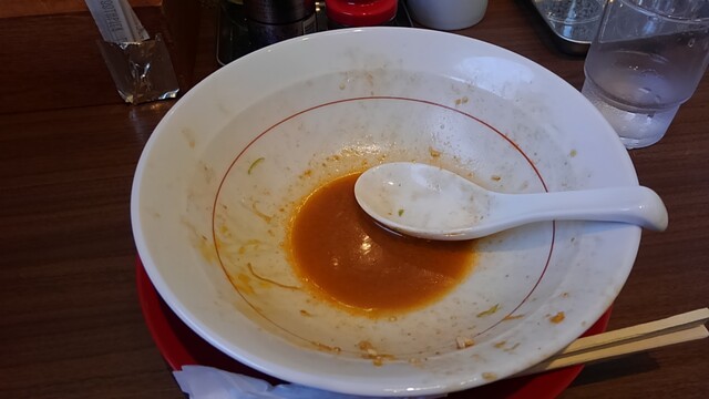 麺も具もご飯も美味しくいただき、レンゲで底に沈んでいる挽肉を掬って食べてたら、思わず完汁しちゃいました。美味しいですもん。辛さがとても感じられ身体温まる一杯です。