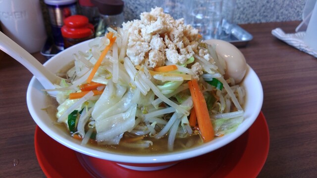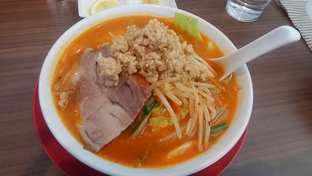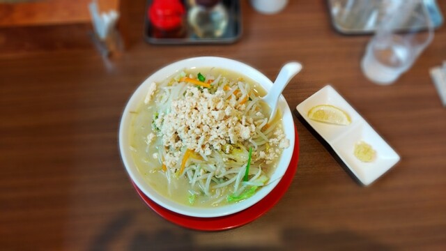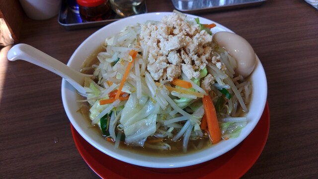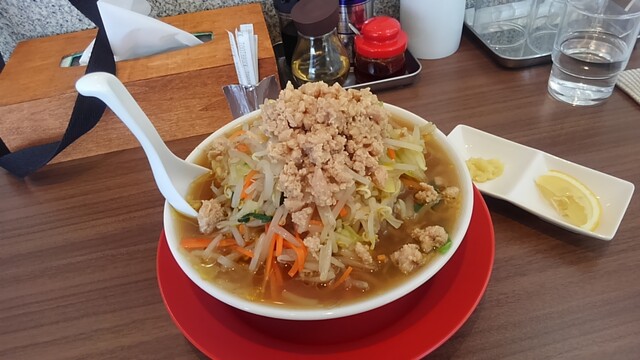 まもるさんが直々にタンメンを持ってきてくれました。鶏そぼろサービスという嬉しいお気遣いもあり感謝です。
