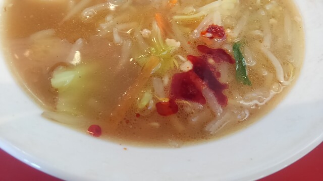 そしてタンメンが着丼です。まずはスープから、濃厚塩味のスープ、野菜のミネラルが溶け込んで旨い!