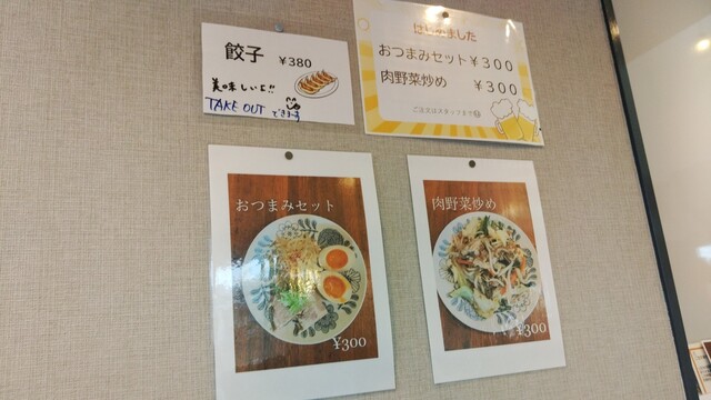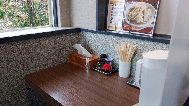 奥さんに濃厚+野菜増量のチケットを麺カタメでお渡しし、濃厚鶏白湯タンメンを待っている間に1番席のお客さんが帰られたので、奥さんにお声掛けしてのワープ。