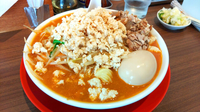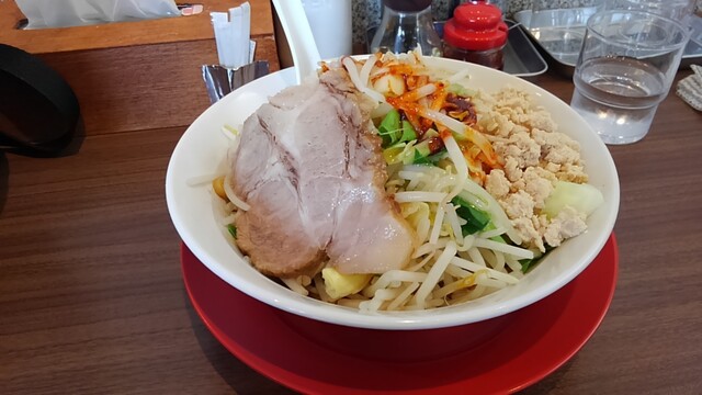 まぜそば系は麺量が多いので、今回は少な目にお願いしたところ、麺を少なくした分、炒め野菜&鶏そぼろでカバーしてくれて、結果全体の量は変わらない感じに(笑)