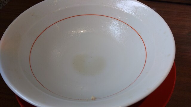 美味しくて美味しくて、あれよあれよと言う間に具も麺も食べ切り、そこからスープをレンゲに掬ってゴクゴクと、そして完汁~!